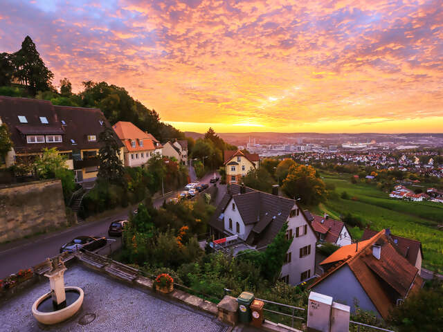 Stuttgart is the capital of the state of Baden-Württemberg in southern Germany. The sixth-largest city in Germany, Stuttgart has a population of 600,038 (December 2008) while the metropolitan area has a population of 5.3 million (2008). The city lies at the centre of a densely populated area, circled by a ring of smaller towns. The city is spread across a variety of hills (many of them vineyards), valleys and parks – unusual for a German city and often a source of surprise to visitors who primarily associate the city with its industrial reputation as the 'cradle of the automobile'. Stuttgart has the status of Stadtkreis, a type of self-administrating urban county. The city's tourism slogan is "Stuttgart offers more".
